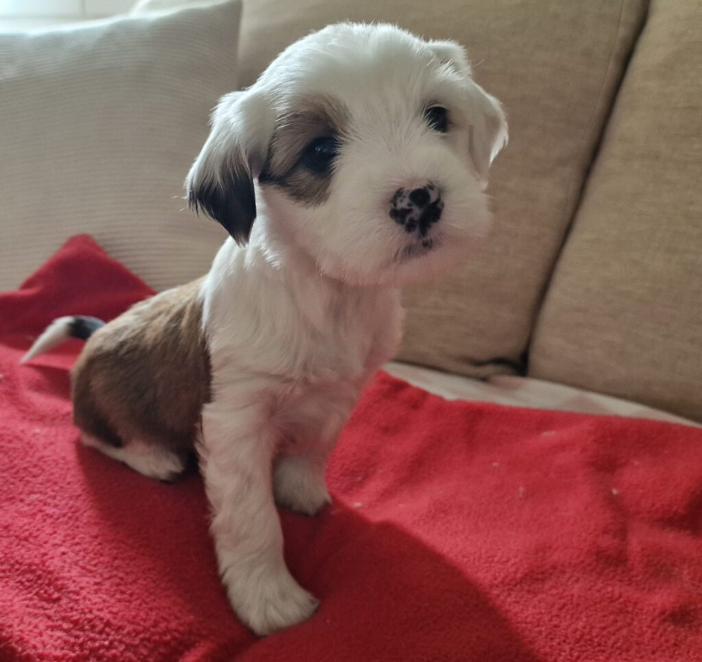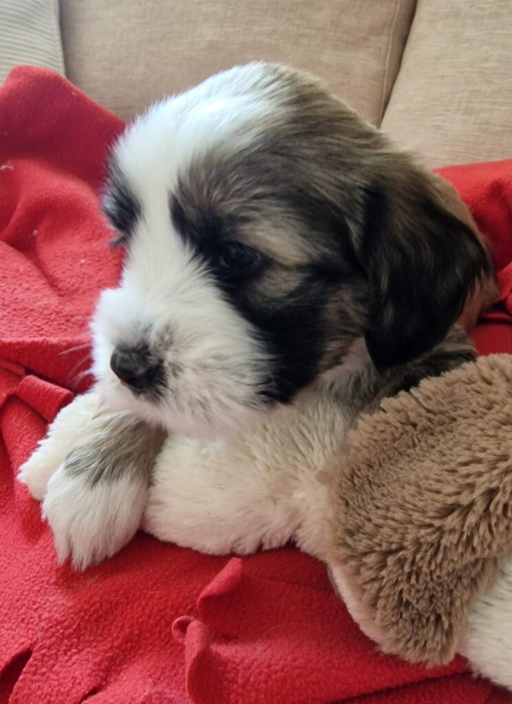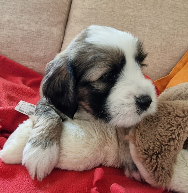 Il m’a fallu 3 longs mois pour convaincre mon mari d’en posséder un. Et lorsque j’ai pu enfin téléphoner au magnifique élevage Lha-Khang à Cortébert, l’éleveuse Mme Michèle Forchelet (qui depuis est devenue mon amie) m’a dit qu’il lui restait 2 chiots, un noir et blanc et un tout noir.