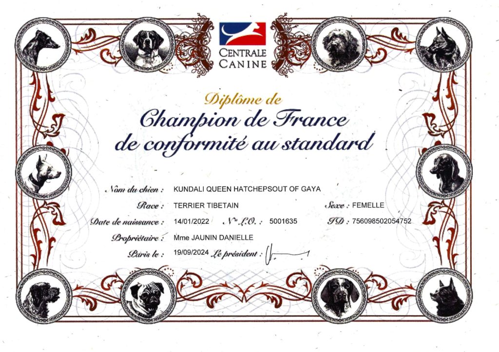 En octobre 2023 Queen a brillamment réussi son test de confirmation d’élevage, elle devient officiellement nouvelle femelle d’élevage chez Kundali !