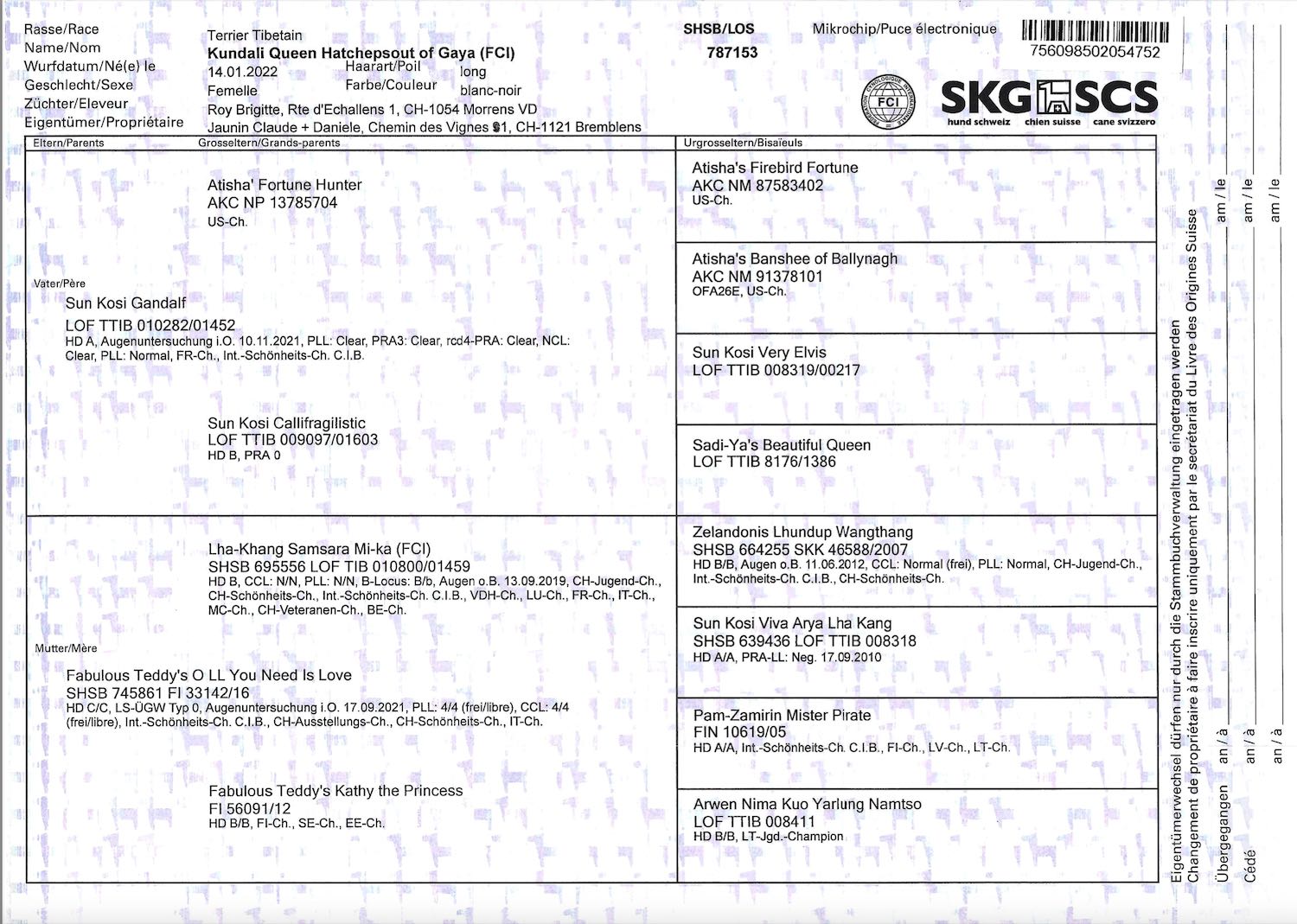 Queen appartient à Mme et M. Danièle et Claudin Jaunin, ils habite près de chez moi. Ces 2 propriétaires ont l’aimable gentillesse de lui donner la possibilité de devenir une chienne d’élevage KUNDALI.