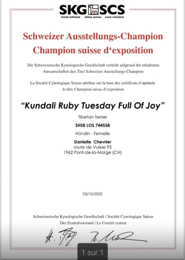 Je les remercie d’avoir accepté que Ruby reste en droit d’élevage KUNDALI!